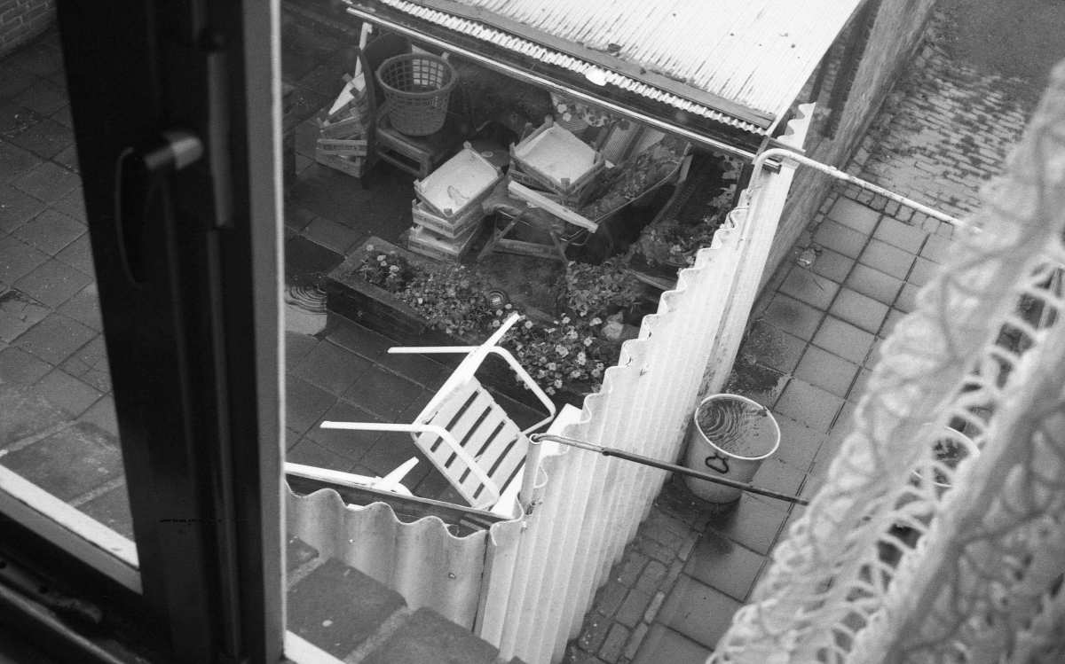 Looking down through rear window in rainy weather