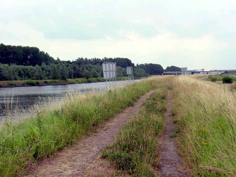 I then would have gone onto the strip of grass that runs parallel to the highway and followed that to the canal a bit more than a kilometer further (this is awkward but there is no other way to reach the canal coming from the south). At the canal I would have turned left to cross the highway (under the bridge) and run the last about 600 meter to the finish, to be recognized by the two signs opposite the river Donge that runs into the canal there.