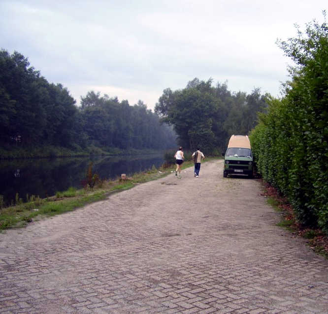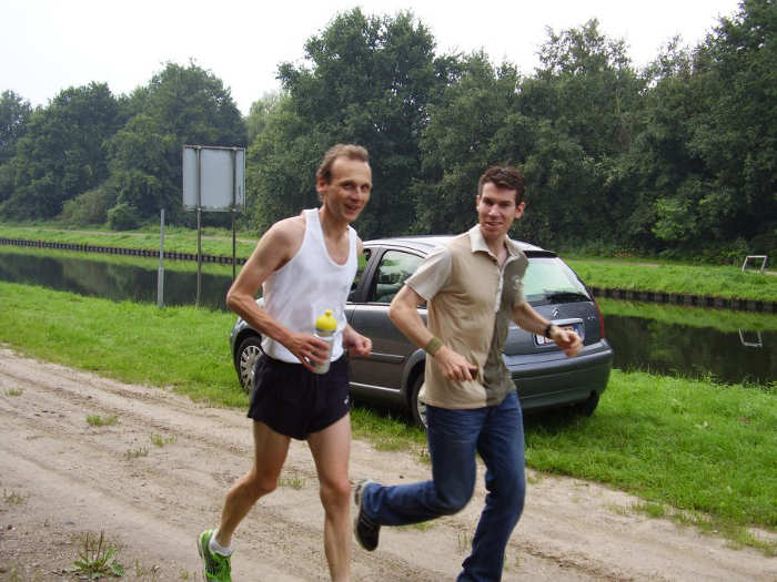 Edward Vanhove from Belgium assisted me by driving ahead in a car to meet me at a few points along the canal, handing food and water to me, and driving me back home afterwards.