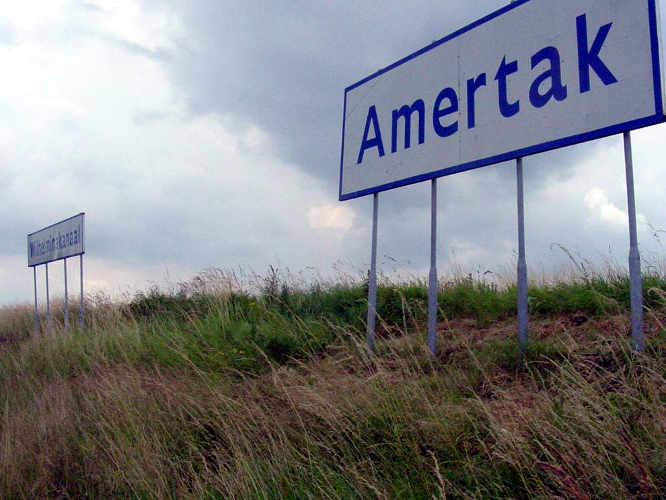 Here is the end of the canal; the photo is taken north of Oosterhout, facing south. The canal does not actually stop there, but is called differently from there on — Amertak — and runs into the river Amer, 3 km further north. This last stretch of about 3 km was dug much later than the first 68 km, and has a different name, so I did not include it in the run. To illustrate the change to Amertak, here is a photo that shows both signs.