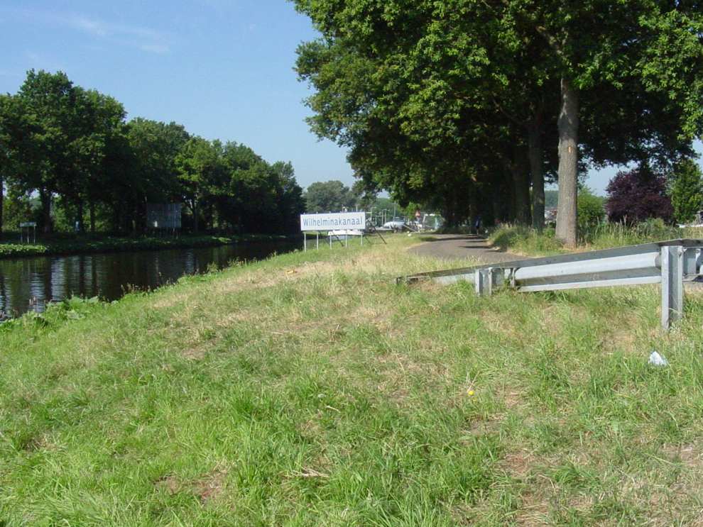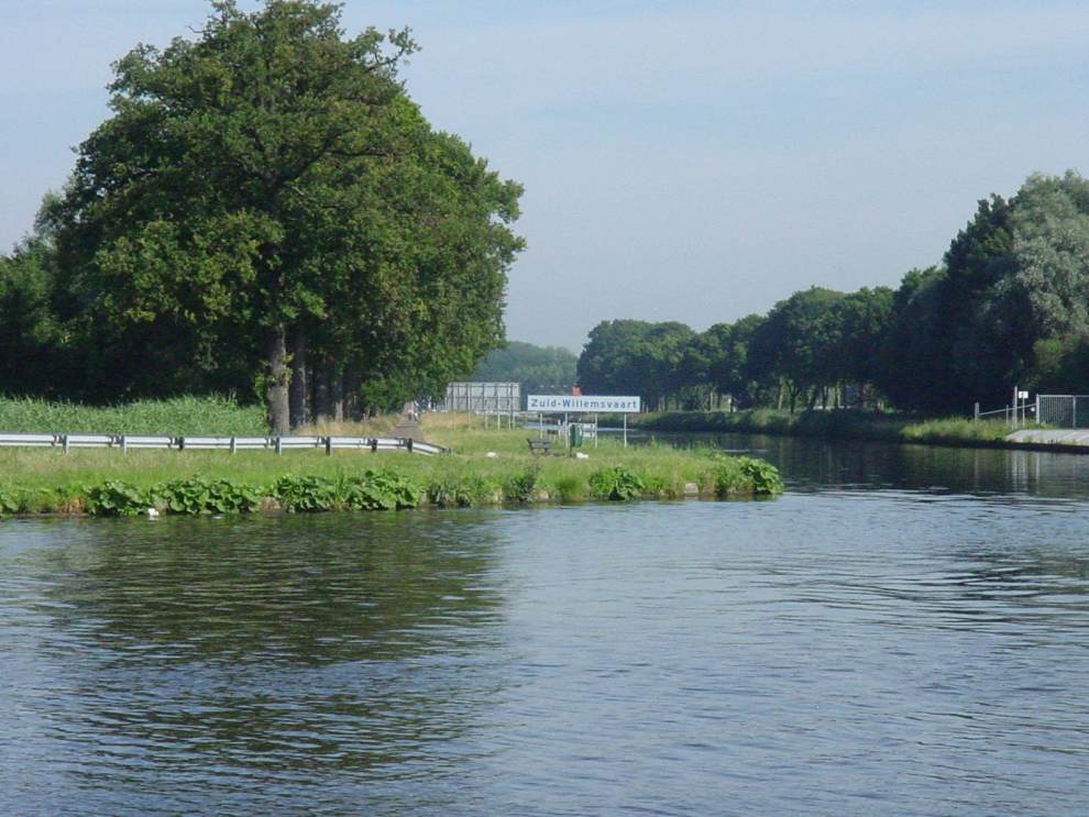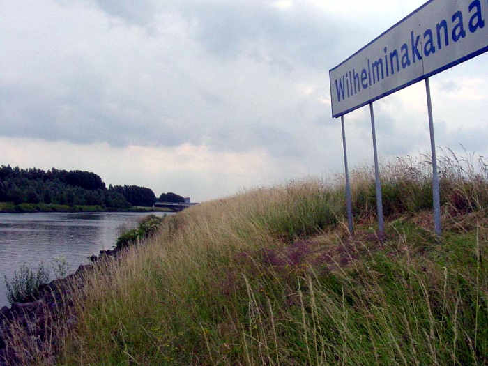 Here is a photo of the starting location, with on the far left the sign that says Wilhelminakanaal, and on the far right the sign that says Zuid-Willemsvaart (another canal). The photo was taken from the south bank of the east end of the Wilhelminakanaal. Here a closer shot of the sign that says Zuid-Willemsvaart.